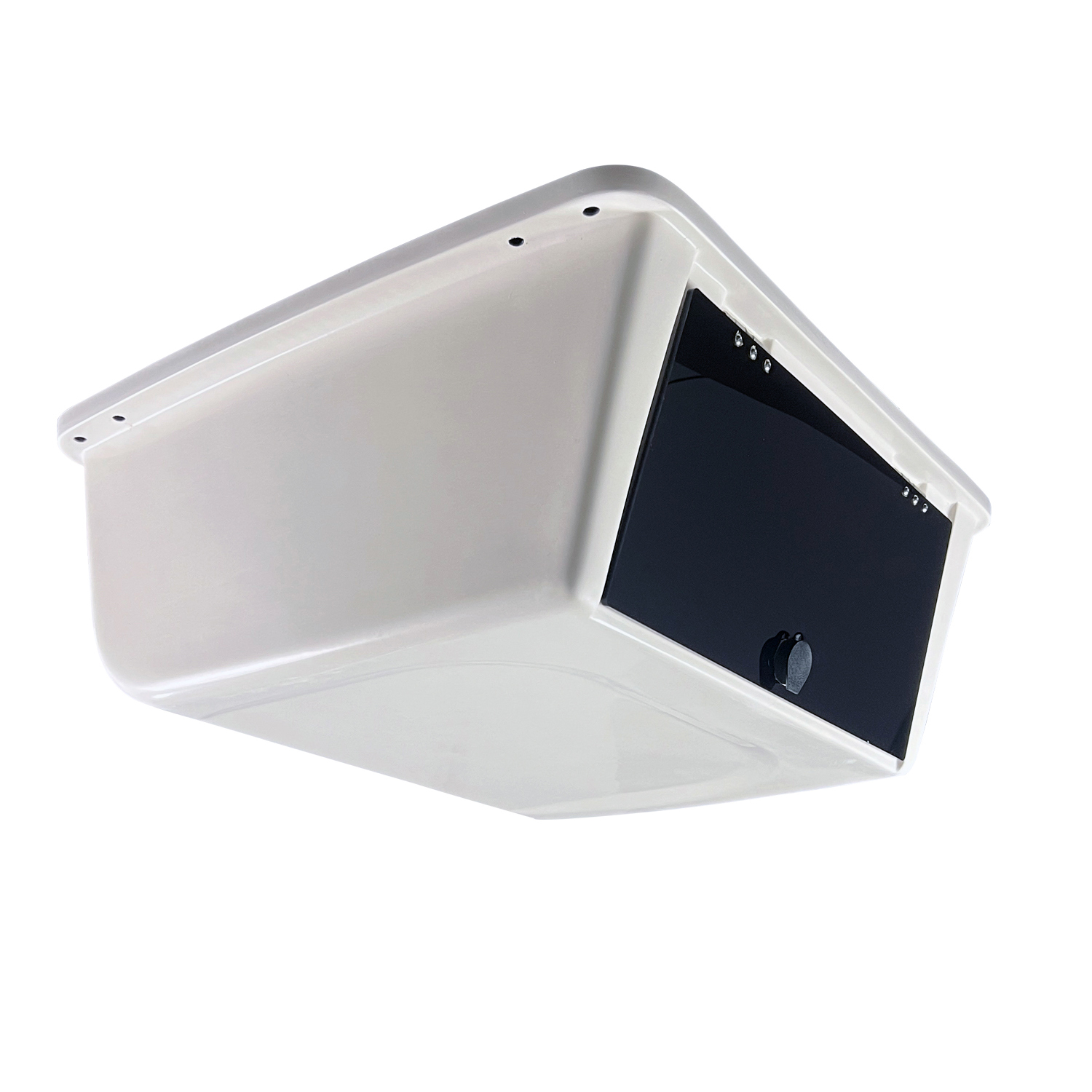 The offer doesn't include the 4x mounting clamps as shown in the drawing. We supply 4x straight bolts and you can drill holes through the tube and mount the box with the bolts. If you want to avoid drilling holes, please order optional clamps from us .