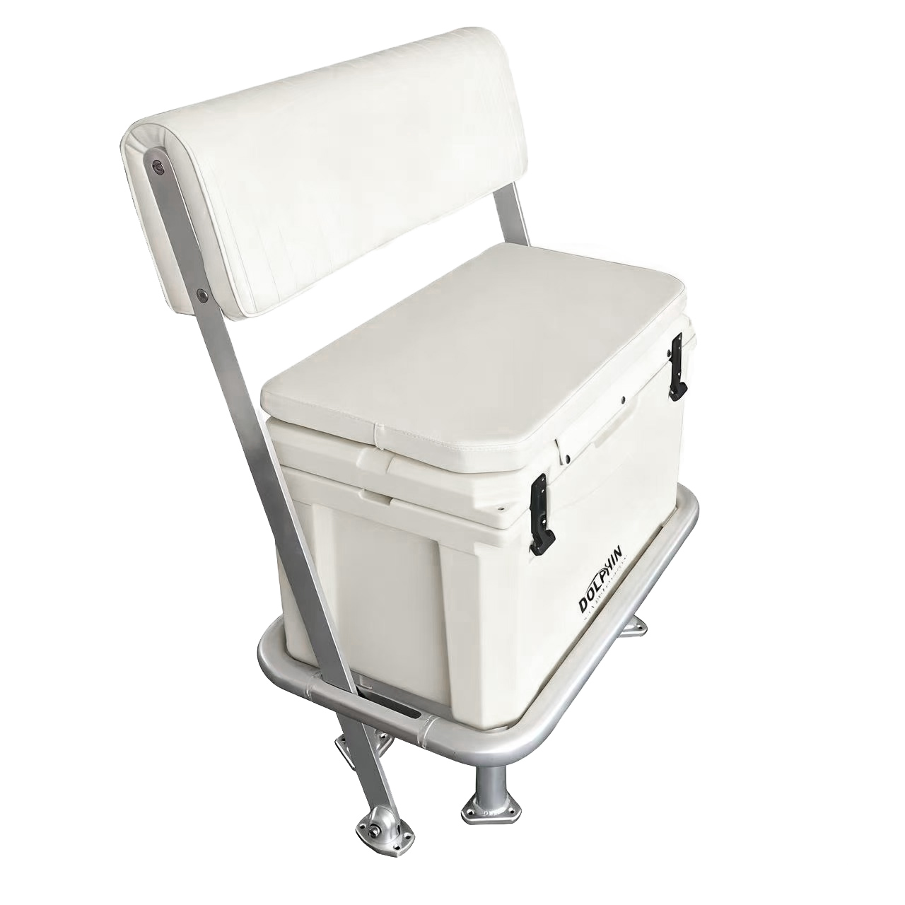 Coming with white seat cushion, back rest and all mounting hardwares, which makes it not only a fishing cooler but also a leaning post. The back rest is free to switch direction towards foward or backward.